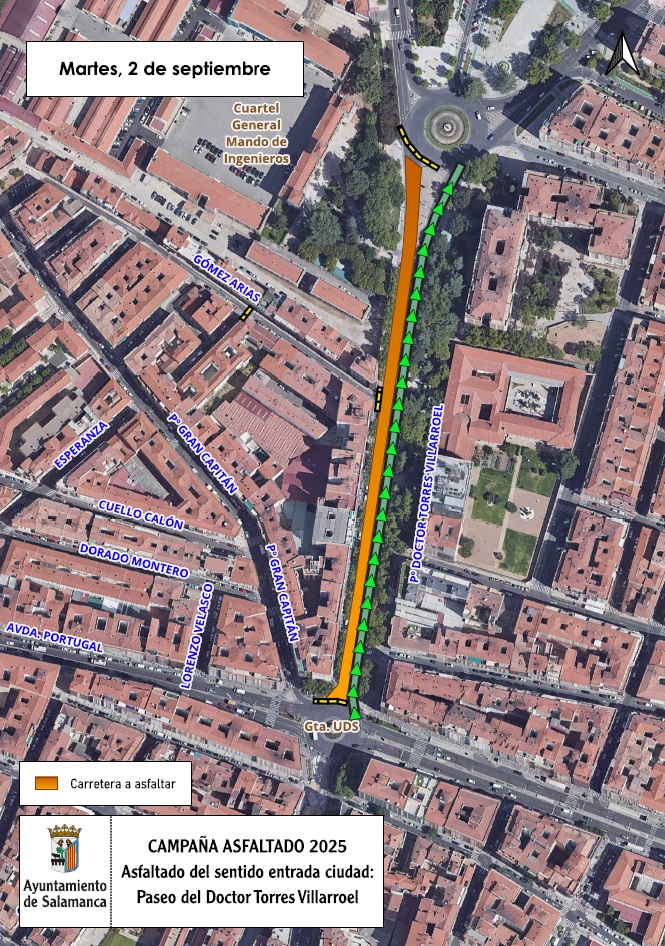 Cortes de tráfico y desvíos mañana en el paseo del Doctor Torres Villarroel por trabajos de asfaltado