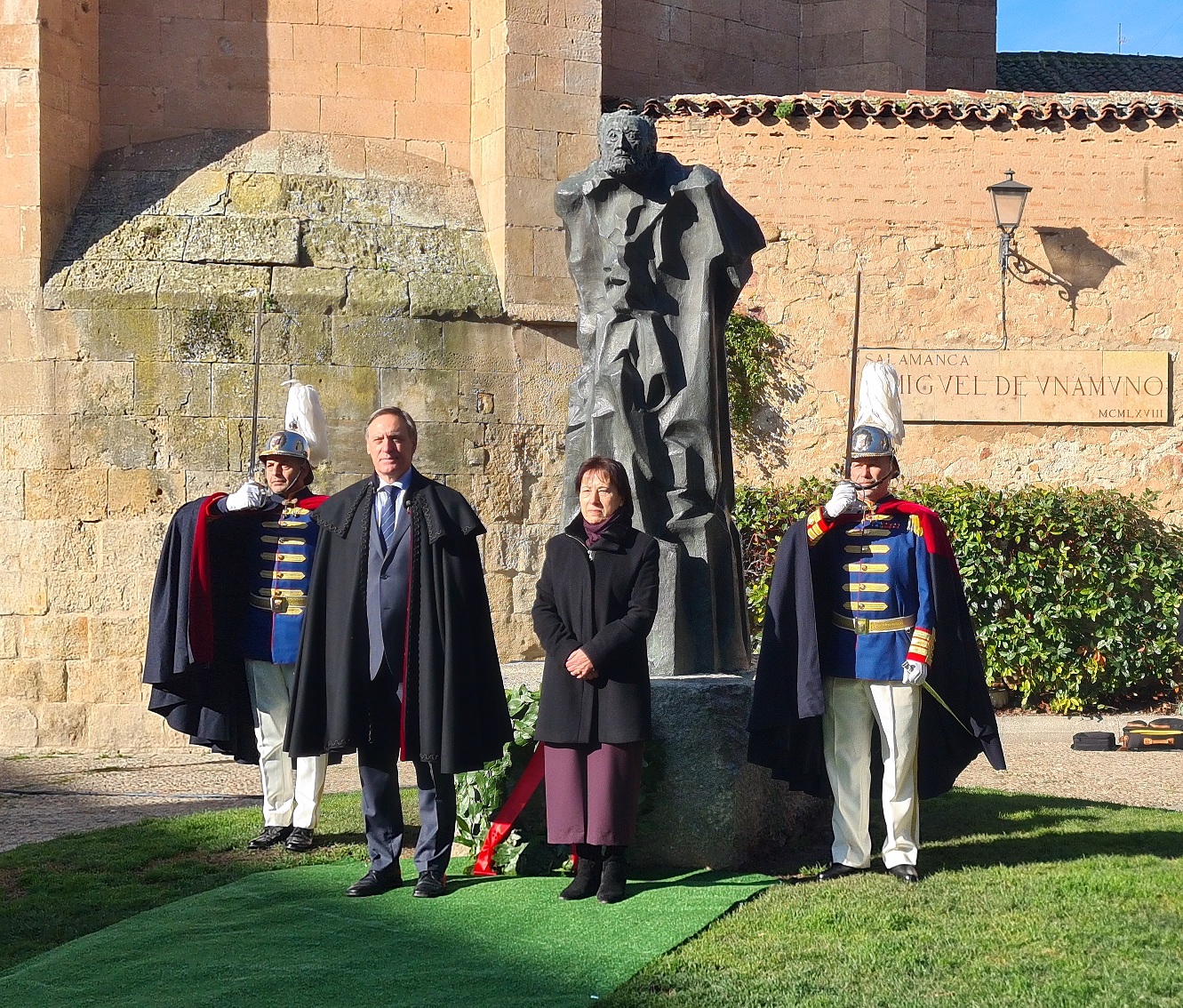 La tradicional ofrenda floral a Miguel de Unamuno rinde homenaje a su faceta de rector de la Universidad de Salamanca